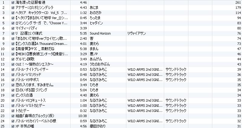 処方薬が三個から四個に増えたよ しょぼーん。 ということで今日は大人しく海を渡った征服者達でも聞こうと思ってます。 あれれやってることが昨日と変わらないぞ まあ、いいや。とりあえずサンホラサンホラ(*´∀`*) …あ FF12やらなくては ていうか感想を紙に書いたままブログに書いてないことに今気付きました。 …うつすか…。 PR ついに海を渡った征服者の再生数が250回を超えてしまった。
